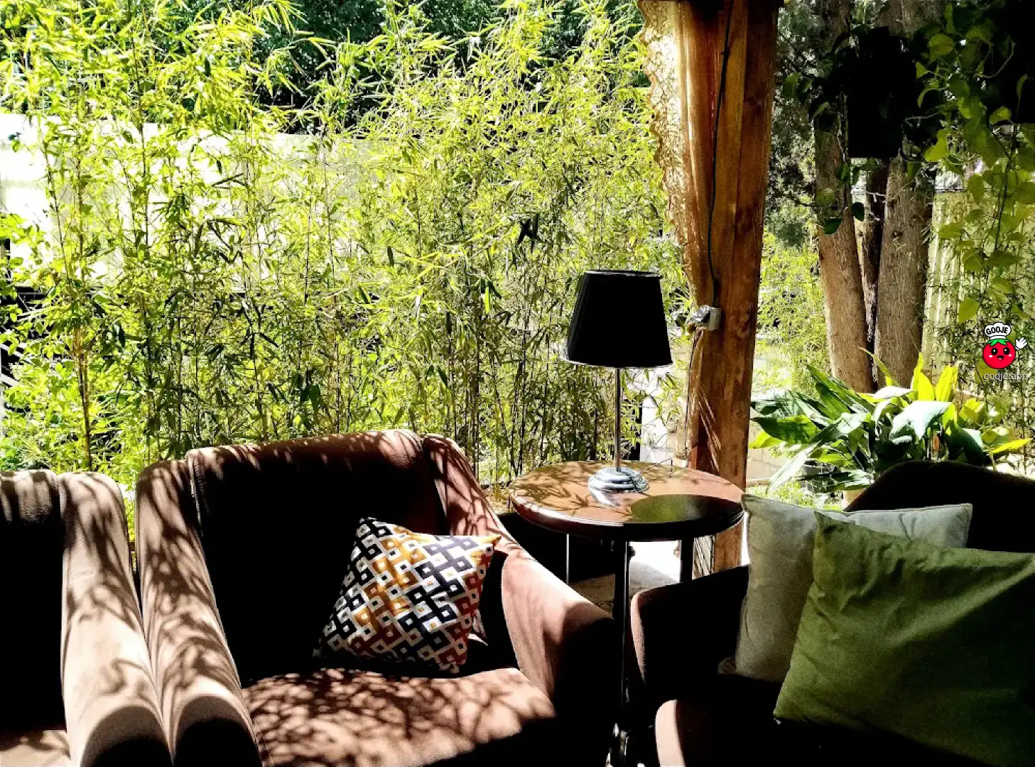 It's very nice and beautiful place and very calm and peaceful ambient with a very delicate cool temperature outside in the yard and cute tables beside the water, also there are a couple of indoor tables, very cozy and nice, a shopping room for souvenirs and little stuffs, candles, mugs, textiles, bags, etc. We had a tea and a white chocolate and the price was comparingly reasonable, I liked this area and very good for taking with friends and having appointment.