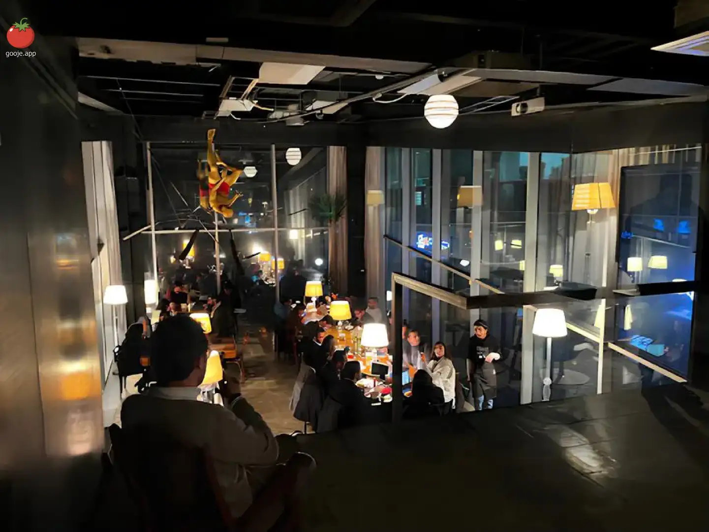 محیط کافه واقعا زیباست. ترکیبی از فضای کلاسیک و مدرن. من واقعا لذت بردم مخصوصا از فضای کافه در شب. آباژورها و ترکیب نوری که داخل کافه بود خیلی حس خوبی میداد. غذا خوب بود ولی ویتر کافه کمی حواسپرت بود و نوشیدنی اشتباه آورد.