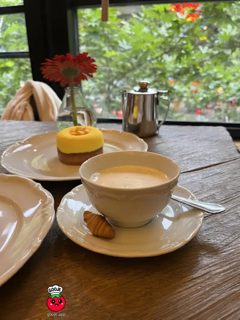 I ❤️ this place, unfortunately we didn’t have time to have supper but i enjoyed of my Affogato coffee ☕️ and my friends took orange juice 🥤 & Black Forest cake, decoration is very cute, big 🥐 croissant was like a decoration in the first floor & even door handles looked like croissant 🥐🥰🥰🥰 price was reasonable, but unfortunately it was not possible to use Wifi 🙁