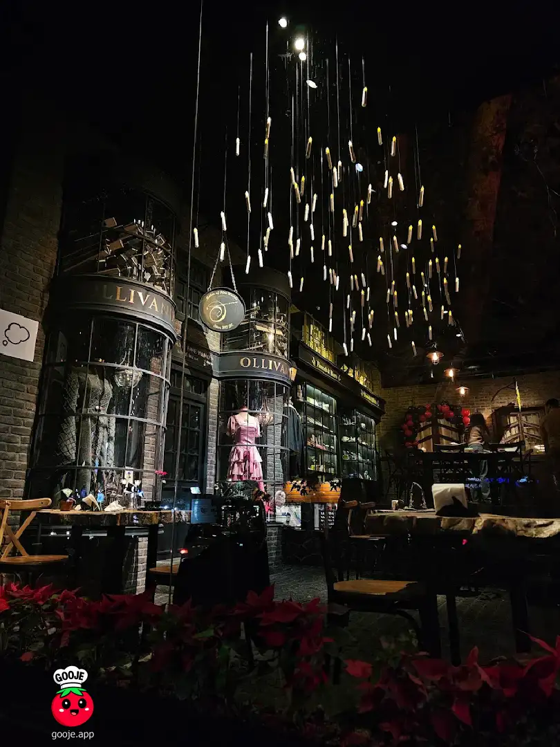 This café-restaurant has a big space, and each section has its own unique theme. One of the sections is Harry Potter-themed, and it’s super cool! They even have Harry Potter costumes, wands, and brooms that you can try on. The design feels just like the movie. The other sections are also beautifully decorated.