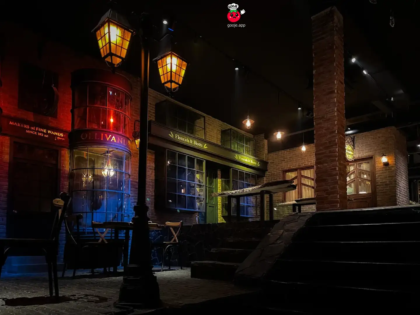 فضای بزرگی داره که چندتا دکور مختلف روداخلش اجرا کردن، قسمت ورودی دکور مربوط به هریپاتر هست که جالب دیزاین شده و یکسری اکسسوری بهتون میدن که باهاش عکس بگیرید، کلا برای افرادی که به هریپاتر علاقمندن خیلی خاطره انگیزه، منو هم تقریبا کامله اما میتونست بهتر باشه و بیشتر به تم هری